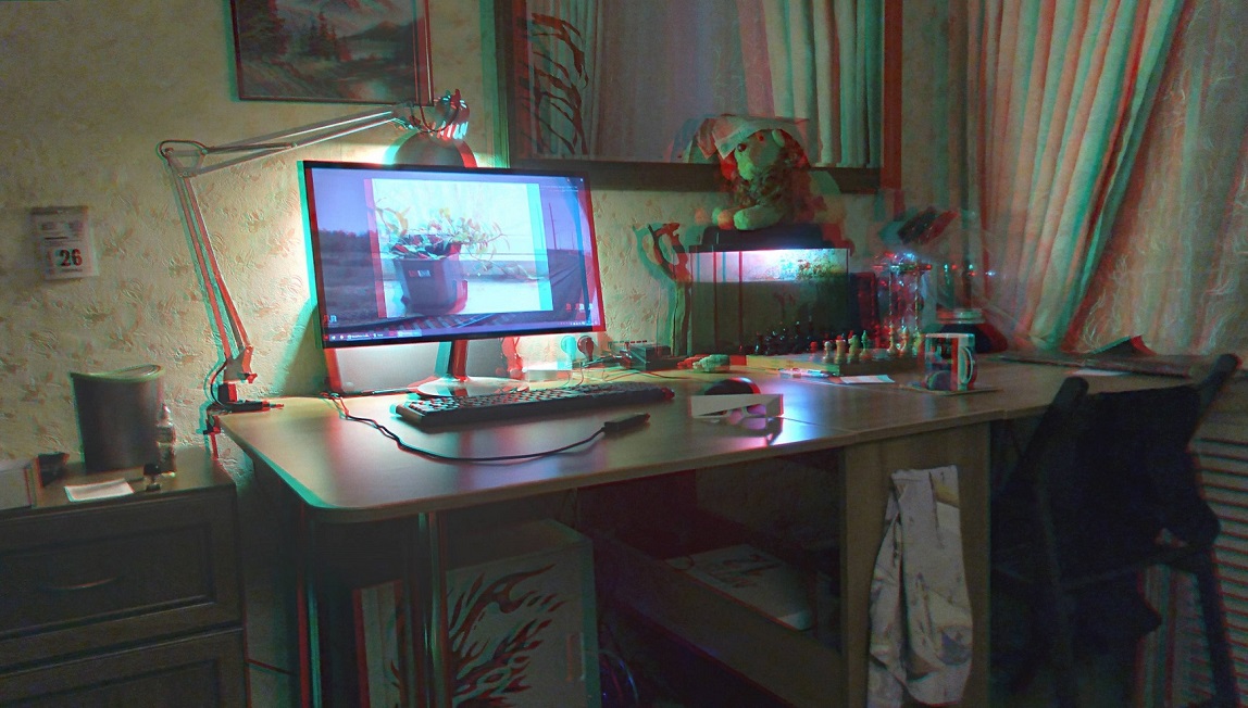 What could be considered the downside: requirements for viewing conditions (glasses, illumination, etc.) are stricter for anaglyph processed with Anahald's CLUTs than with half-color or Dubois anaglyph.