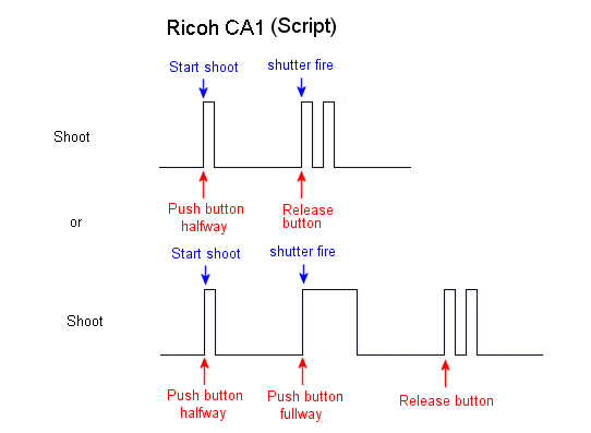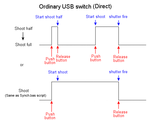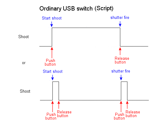 The Ricoh switch applies pulses to the USB V+ and ground connections at about 5V peak so should work with all supported cameras.