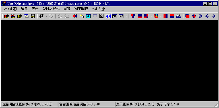 また、この機能は、アナグリフやインターレース表示ではできません。アナグリフやインターレース表示の時に、「一発簡単左右位置調整モード」を選択すると、横並び表示に自動変更されますのでご注意下さい。